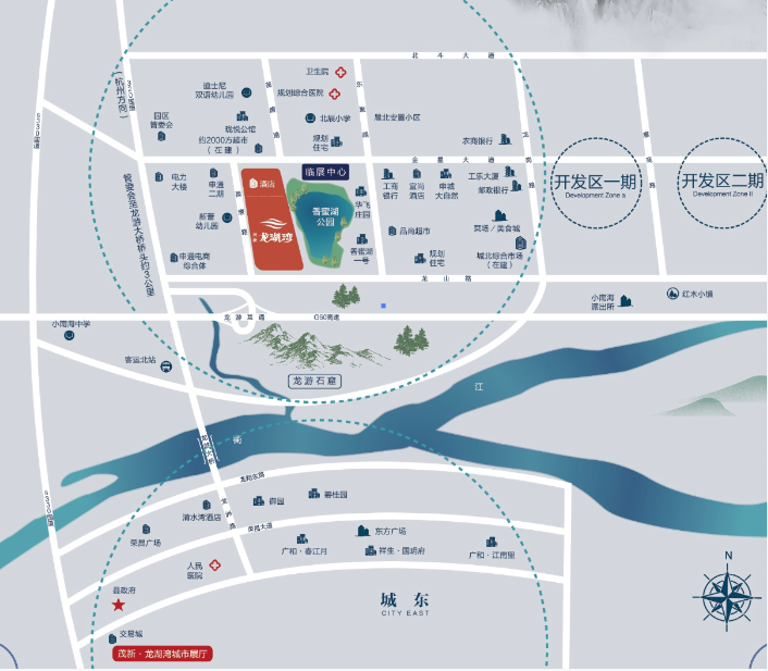 茂新·龍湖灣項目位于龍游主城的北大門(mén)——城北經(jīng)濟開(kāi)發(fā)區,交通便捷,與滬昆高速、杭長(cháng)高速、320國道、S21省道無(wú)縫對接,距離龍游城區約3公里(龍游大橋為界)。距龍游高鐵北站約6公里。 茂新·龍湖灣是城北行政、文化、商業(yè)、經(jīng)濟、生活中芯,周邊新蕾幼兒園、迪士尼雙語(yǔ)幼兒園、北辰小學(xué)、菜場(chǎng)、超市、金星大道商業(yè)圈等一應俱全,在建酒店、在建綜合市場(chǎng)和規劃綜合醫院、大型商業(yè)也將進(jìn)一步升級城市配套。 茂新·龍湖灣依傍城北生活區獨有的水系景觀(guān)——香蜜湖畔,一線(xiàn)湖景,養眼更養心。香蜜湖公園,風(fēng)景秀美,空氣宜人,設有慢行步道、籃球場(chǎng)、羽毛球場(chǎng)……茂新·龍湖灣業(yè)主既可以欣賞美麗湖景,也可以在茶余飯后在湖畔漫步、運動(dòng),享受向湖而生的湖畔理想生活。