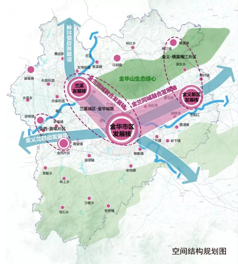 "三核"為金華市區發(fā)展核、蘭溪發(fā)展核、金義新區發(fā)展核;