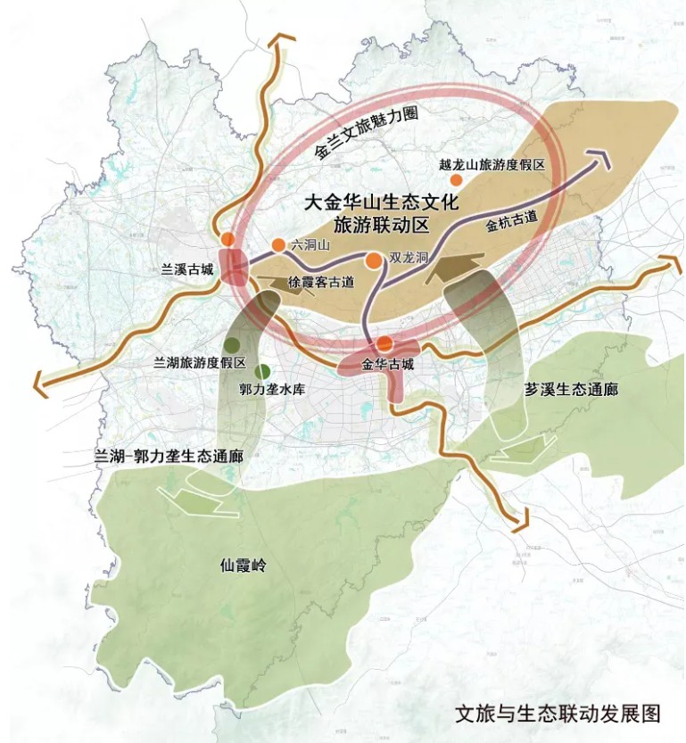2、同生態(tài)共保,聯(lián)保聯(lián)治、魅力文旅。謀劃大金華山生態(tài)文化旅游聯(lián)動(dòng)區,打造金蘭文旅魅力圈。