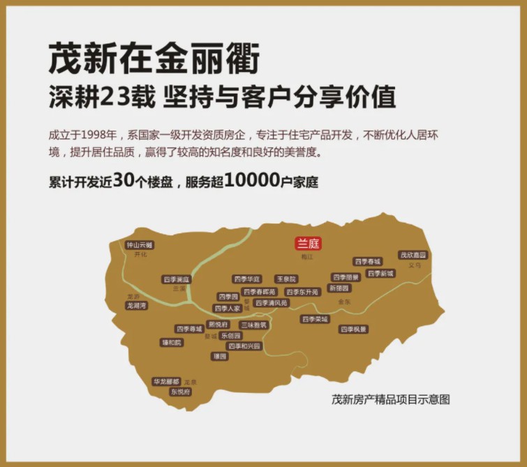 茂新房產(chǎn)成立于1998年,系國家一級開(kāi)發(fā)資質(zhì)房企,上榜“中國房地產(chǎn)誠信企業(yè)”。累計開(kāi)發(fā)近30個(gè)樓盤(pán),服務(wù)超10000戶(hù)家庭,本著(zhù)“以人為本,追求卓越”的企業(yè)宗旨,一直專(zhuān)注于住宅產(chǎn)品的開(kāi)發(fā)。多年來(lái),以專(zhuān)業(yè)、創(chuàng )新以及高品質(zhì)贏(yíng)得了較高的知名度和良好的美譽(yù)度。
