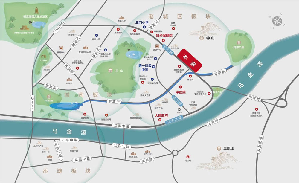 茂新·鐘山云樾項目立于鐘山南麓,北臨龍潭灣公園,東攬芹江盛境,鐘秀廣場(chǎng)、金溪畫(huà)廊在側,環(huán)境資源優(yōu)越。